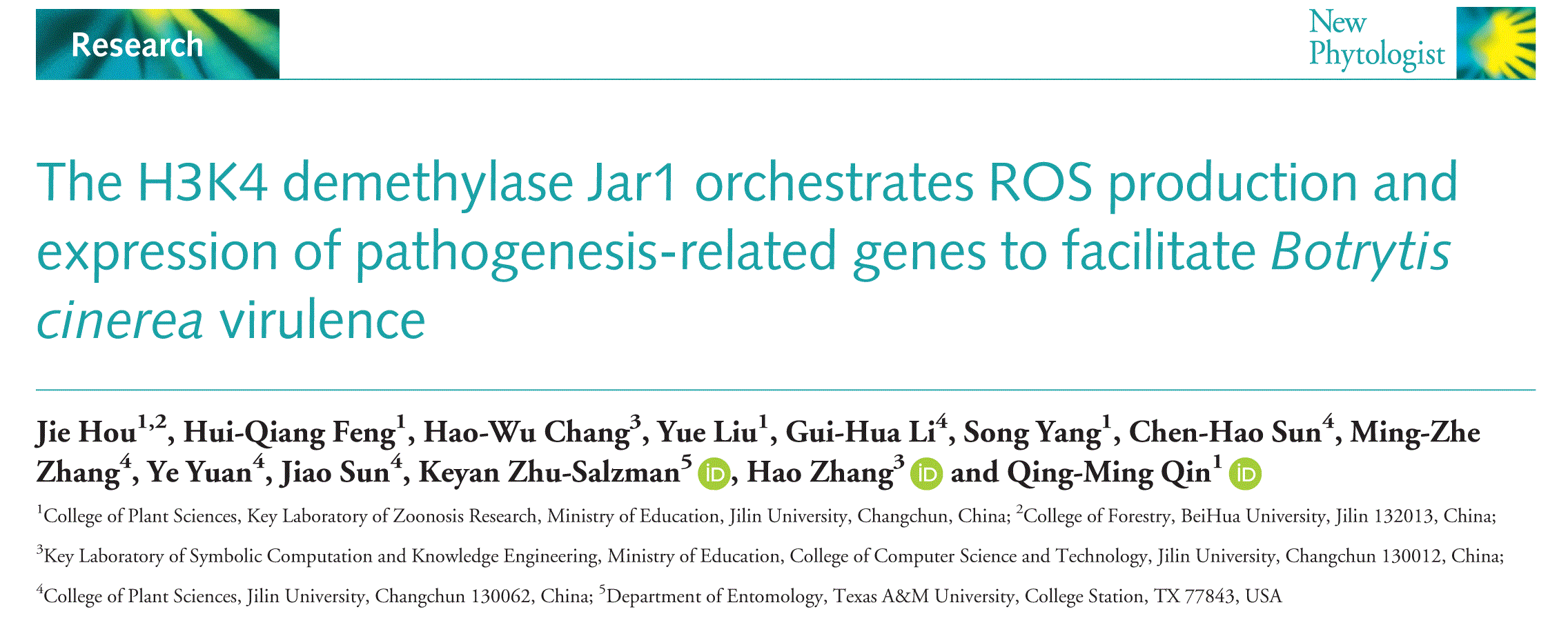 New Phytologist Professor Qingming Qin from the School of Plant Sciences of Jilin University reveals a new mechanism of histone demethylation that finely regulates the pathogenicity of Botrytis cinerea