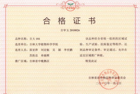 吉大101为吉林省审定的玉米品种,审定编号2010026,由taptap点点体育原亚萍教授研究团队选育。