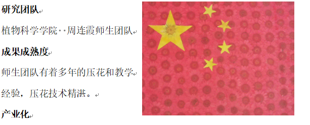 产业立足于园艺植物的观赏性,将天然植物与文化创新相结合,让更多人感受到植物科学与艺术结合的魅力。产品以自然界植物为原材料,通过采摘其根、茎、叶、花和果实等部位,用物理或化学等干燥法脱水处理,将植物本身具有的天然形态、自然色泽和奇妙纹理巧妙地保留起来,将压制好的平面花材,经设计构思粘贴在各种衬物上制成精美的艺术品。产业在花艺创作的基础上,以能长久保存花艺产品的观赏特性、纪念价值和意义以及压花教学带来的心理疗法作为产业发展思路。产业定位为文化创意产业中的手工艺品制造,做结合中国传统文化特色和时代精神的压花手工艺品,以及建立使顾客解压、舒缓心情等作用的压花休闲教学。本团队在第二届全国农科学子创新创业大赛“未来农业”奇思妙想创意赛道东北赛区三等奖、2020年taptap点点体育大学生生命科学创新创业大赛一等奖、2020年taptap点点体育大学生创新创业校赛互联网+赛道铜奖等。
