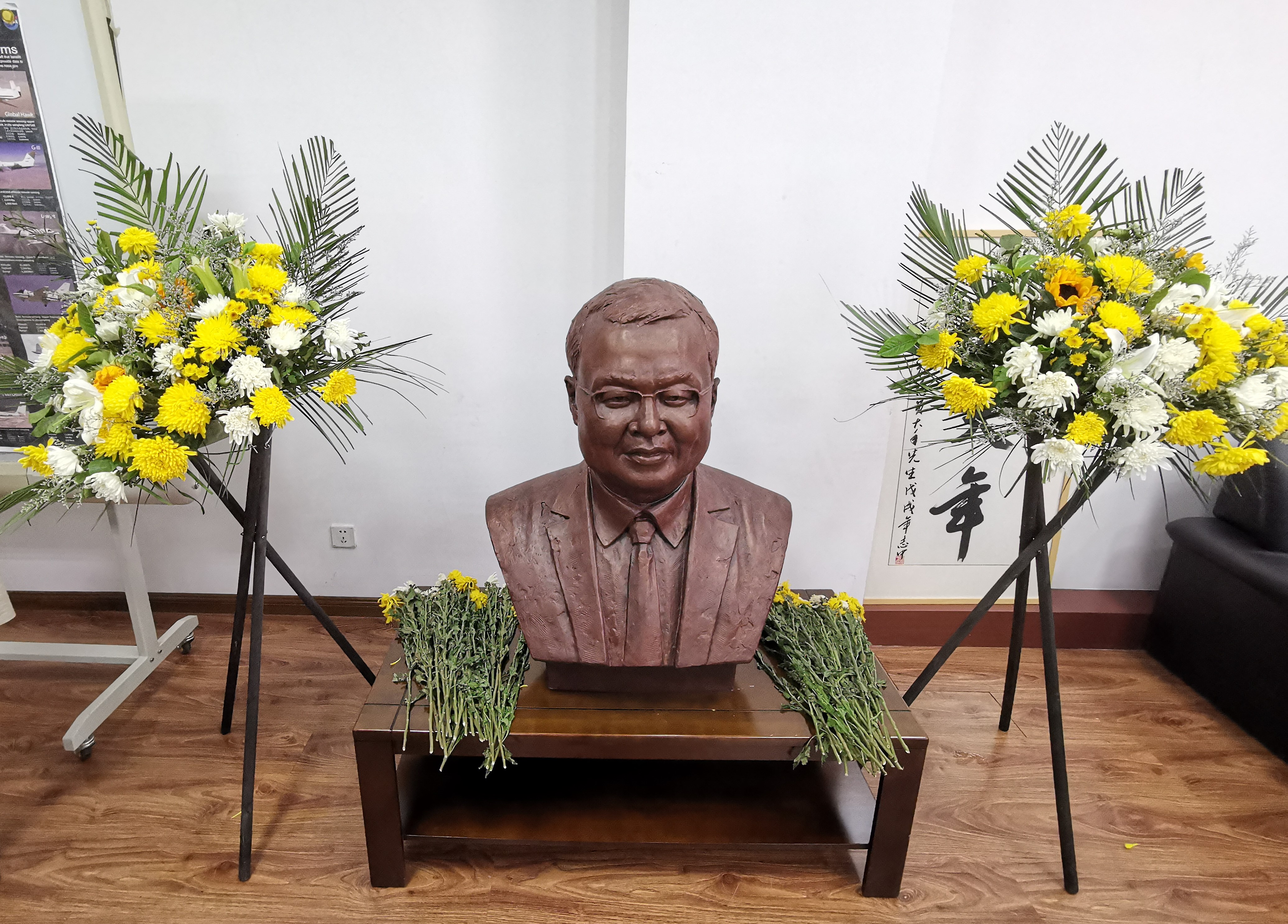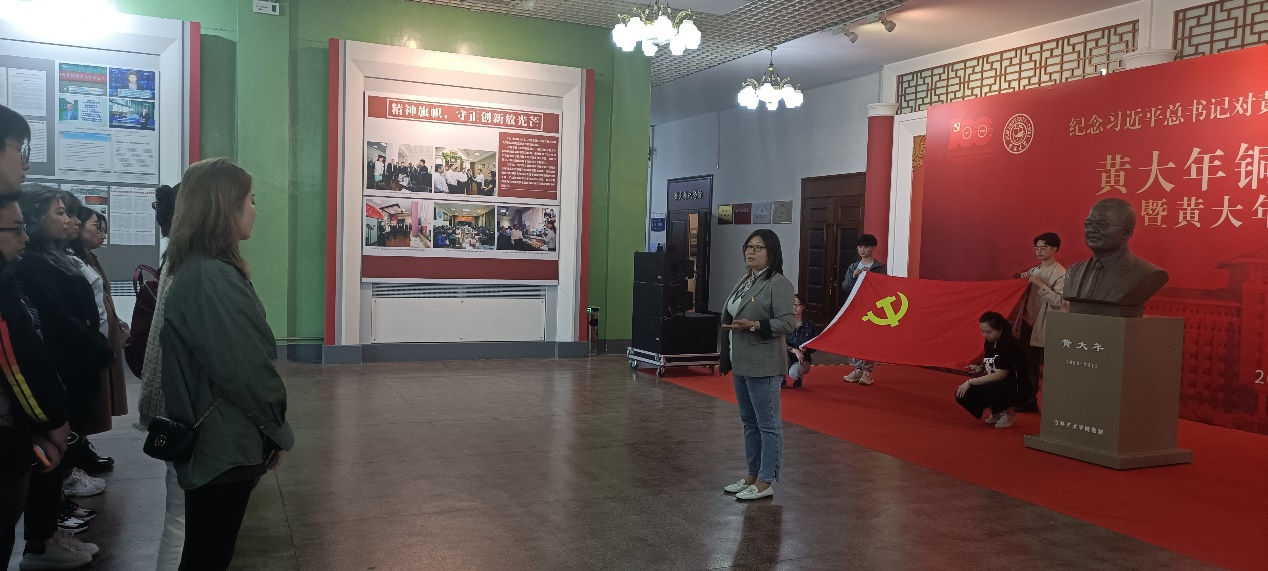 参观前,大家在现场观看了黄大年铜像的捐赠仪式,并邀请校党委书记姜治莹与参加党日活动的支部师生合影。姜治莹书记与本科学生党支部书记姚彬老师亲切交谈,询问同学们一行的收获,鼓励同学们学习黄大年老师“心有大我,至诚报国”的爱国精神,并肯定这是一次有意义的活动。