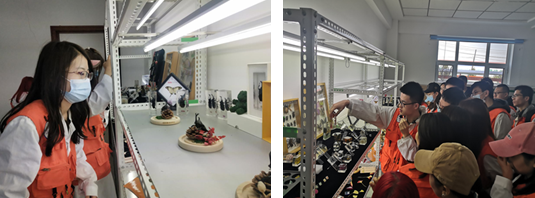 首先,讲解员许晶带领同学们观看了短片并与同学们交流沟通,让同学们了解了国信集团的发展和运营情况。接着,一行人参观了树脂标本,面对一排排精美的标本,大家纷纷竖起大拇指,感叹标本制作技术的高超。