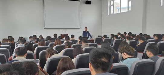最后,邓松传达了学校2021年工作会议精神,并从三个方面做了详细说明:一是以学校2021年工作会议中提到的把论文写在大地上的扶贫专家崔金虎教授为榜样,阐述“做人、做事的重要性”和做人要有“水”的品性。泽被万物而不争名利,利益万物而不图回报,做一个善良、有格局、有胸怀的人。鼓励青年学子要有勇于承担责任的魄力和献身使命的担当,要把自己的理想与祖国的前途、民族的命运紧紧相连,紧密相连,扎根人民,奉献国家。他说:做事要有“山”的品行,要有山的风骨、山的内涵、山的原则,象山一样稳重给人以信任。二是分析了2020年毕业生就业状况和就业质量,通报了2021年截止3月的就业情况,希望大家积极开辟就业渠道,提高就业质量。三是呼吁同学们规划好自己的人生,做一个目标明确的人。