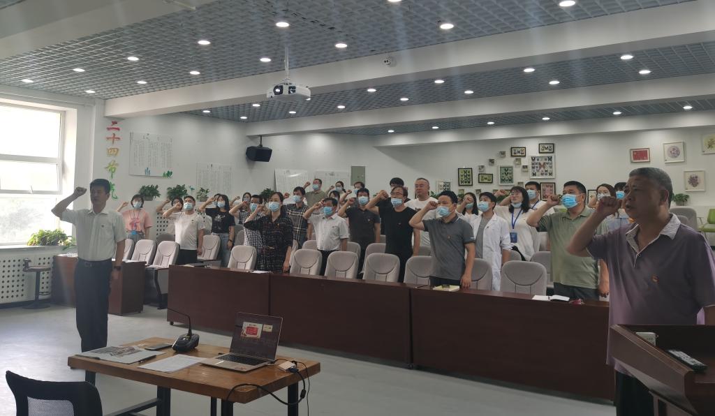党课结束后,由党委副书记李超同志带领全体同志面向党旗,举起右拳,庄重地再次重温了对党庄严而神圣的誓言,表达为党的事业奋斗终身的决心。