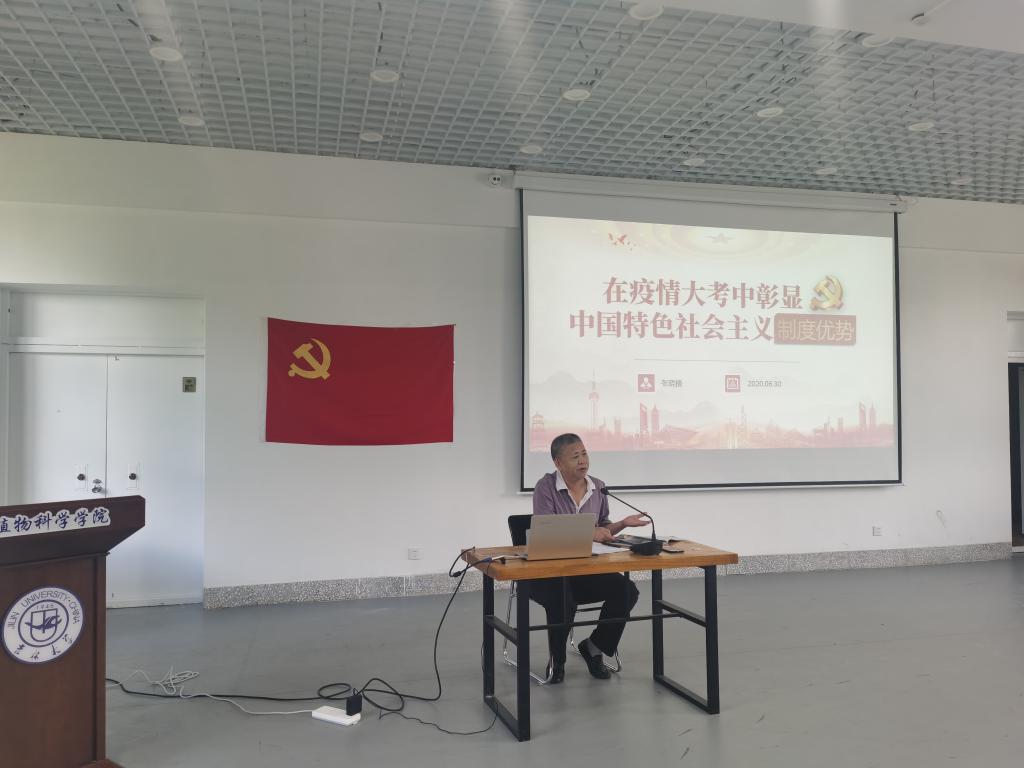 学院党委书记张晓楼同志以《在疫情大考中彰显中国特色社会主义制度优势》为题为师生上了一堂生动的党课。党课围绕“集中彰显制度的五大优势”“五个角度理解制度优势”“人民众志成城 坚定依法防控”三个方面,具体讲解党中央的核心领导优势、强大的政治动员优势、中国共产党的组织优势、党密切联系群众的优势、全国一盘棋思想的优势,用一个个生动的例子增进理解。同时从中国制度建设的历史进程、中国制度本身的内在逻辑、中国制度运行的支撑要素、从制度优劣的评价标准、中国制度发展的前景五个维度,体会中国制度的治理能力和现代化程度,增加了师生对“坚持全国一盘棋,调动各方面积极性,集中力量办大事”的显著优势的认同感。