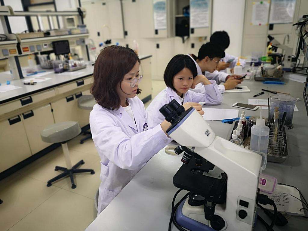 一次次重复的实验操作,一个个低头专注的白色背影,在时间流淌中,他们的操作越来越熟练,他们的速度越来越快,不再有失败后的叹息,取而代之的是大功告成的舒心呼声。