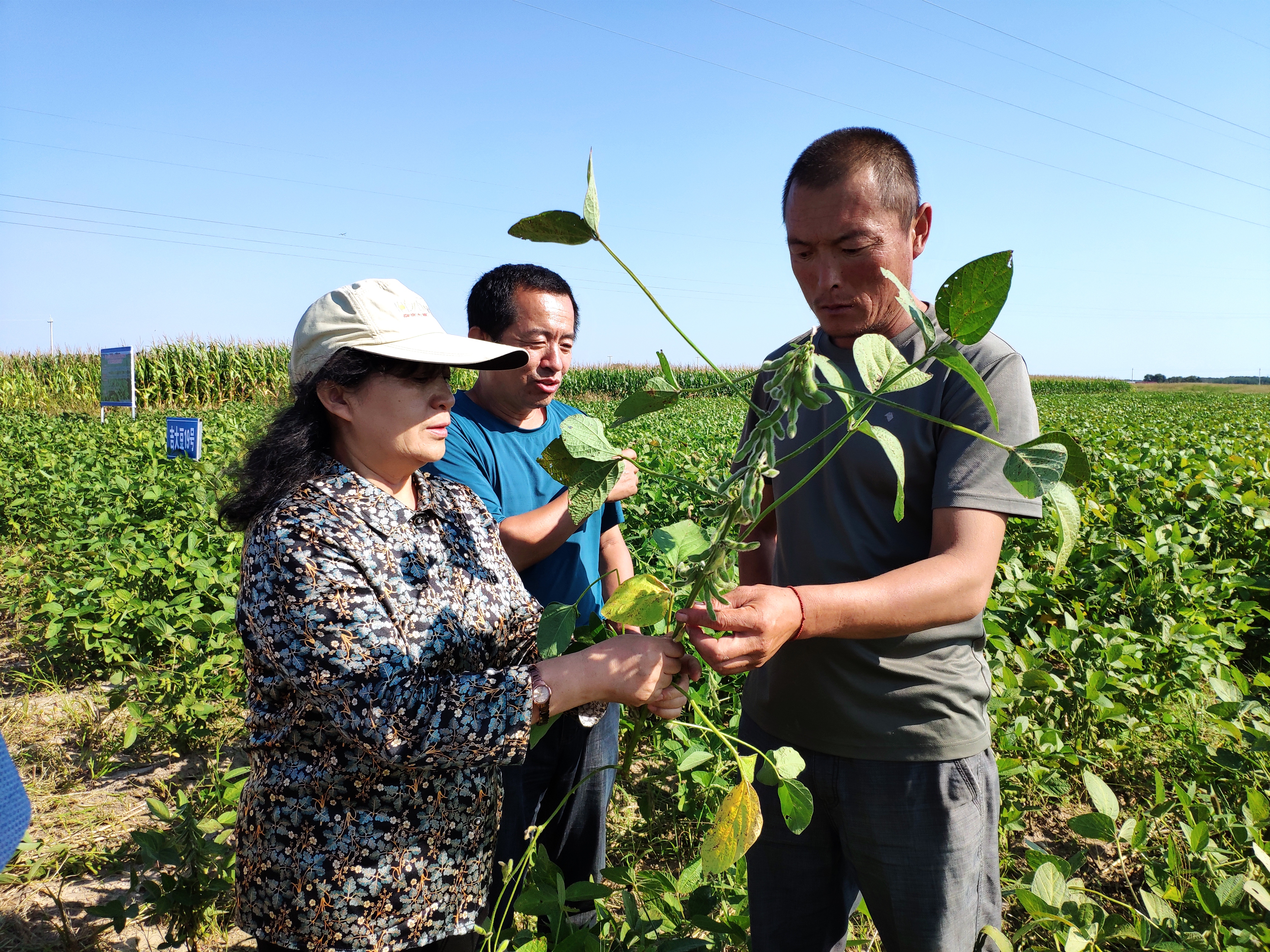 吉林省通榆县土地盐碱化程度高,不适宜种植大豆。2020年,王庆钰教授将自主选育的耐盐碱大豆品种引入当地并试种成功。2021年,在通榆县5个试验点进行大面积示范,专家估产在6000-7500斤/公顷,较之前增产2倍以上。种植户高兴的说,“以前种大豆,为了割秆喂羊,今年种了王教授的品种,饲料有了,还可以打这么多的大豆,赚了”。
