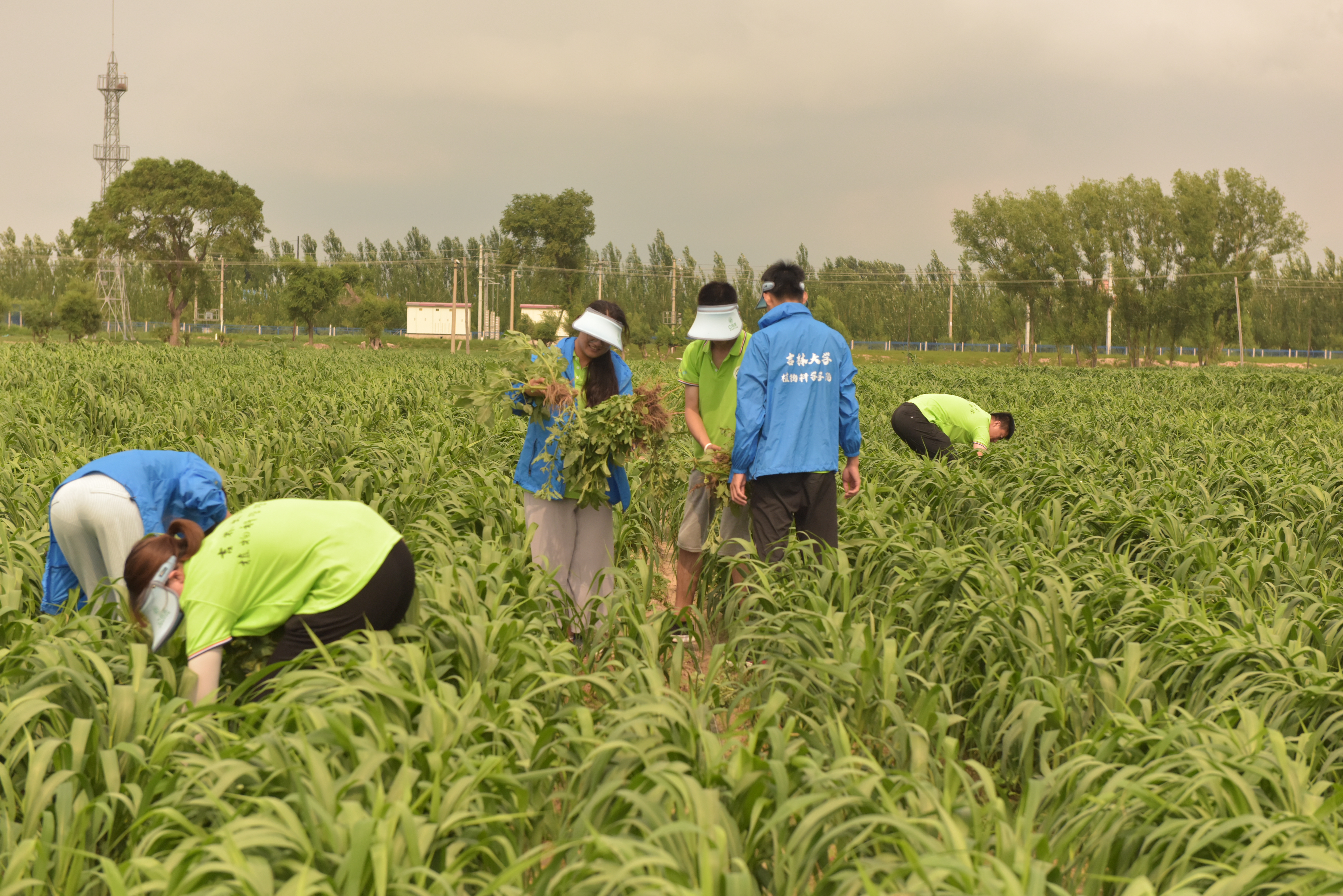 随后,实践团来到taptap点点体育崔金虎教授的试验田进行参观学习。近年来,崔金虎教授为当地农民提供优质种子,结合专业知识对农民进行技术指导,将脱贫攻坚工作开展到田间地头,亲自为农民授课,积极参与并推进县乡农技人员的继续教育,真真切切地把科研成果应用在田间,把国家的相关政策落实到每家每户,极大的提高了当地农作物的产量以及质量,解决了当地农业发展中存在的诸多问题。在崔金虎教授的指导下,实践团的同学们深入实验田间进行除草,热辣的阳光炙烤着同学们,一颗颗汗水从额头滑过砸在泥土中。除草活动结束后,崔金虎教授为同学们详细讲解浅埋滴灌水肥一体化技术,应用此技术成功实现补水和施肥的高效精准。崔教授亲切地与同学们进行交流,他希望同学们作为农科专业学子,要对农业有情怀、有奉献精神,继承发扬吉大学子最为朴素真挚的家国情怀,真正将科研成果写到田间地头,致力农业发展,助力乡村振兴。