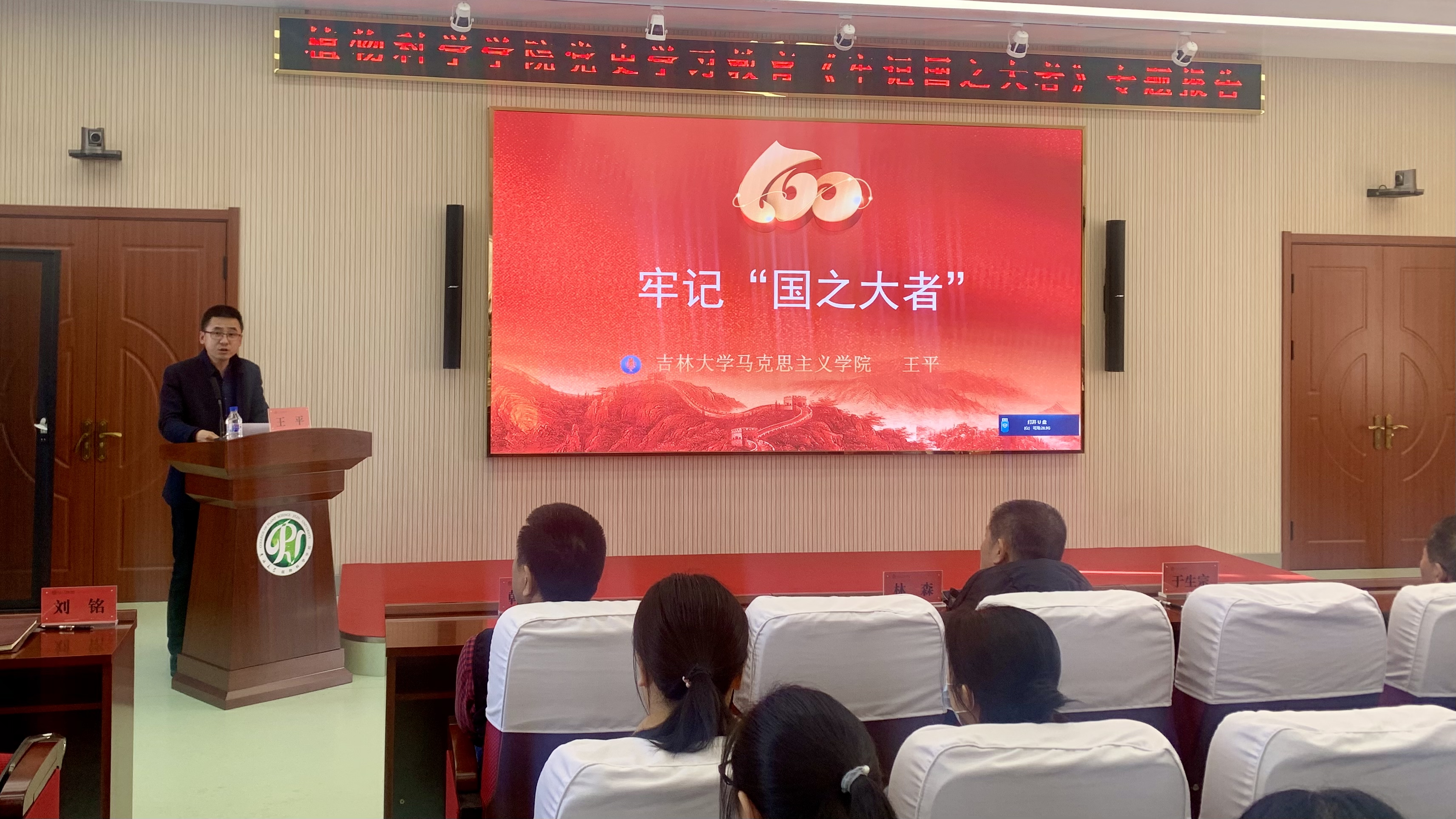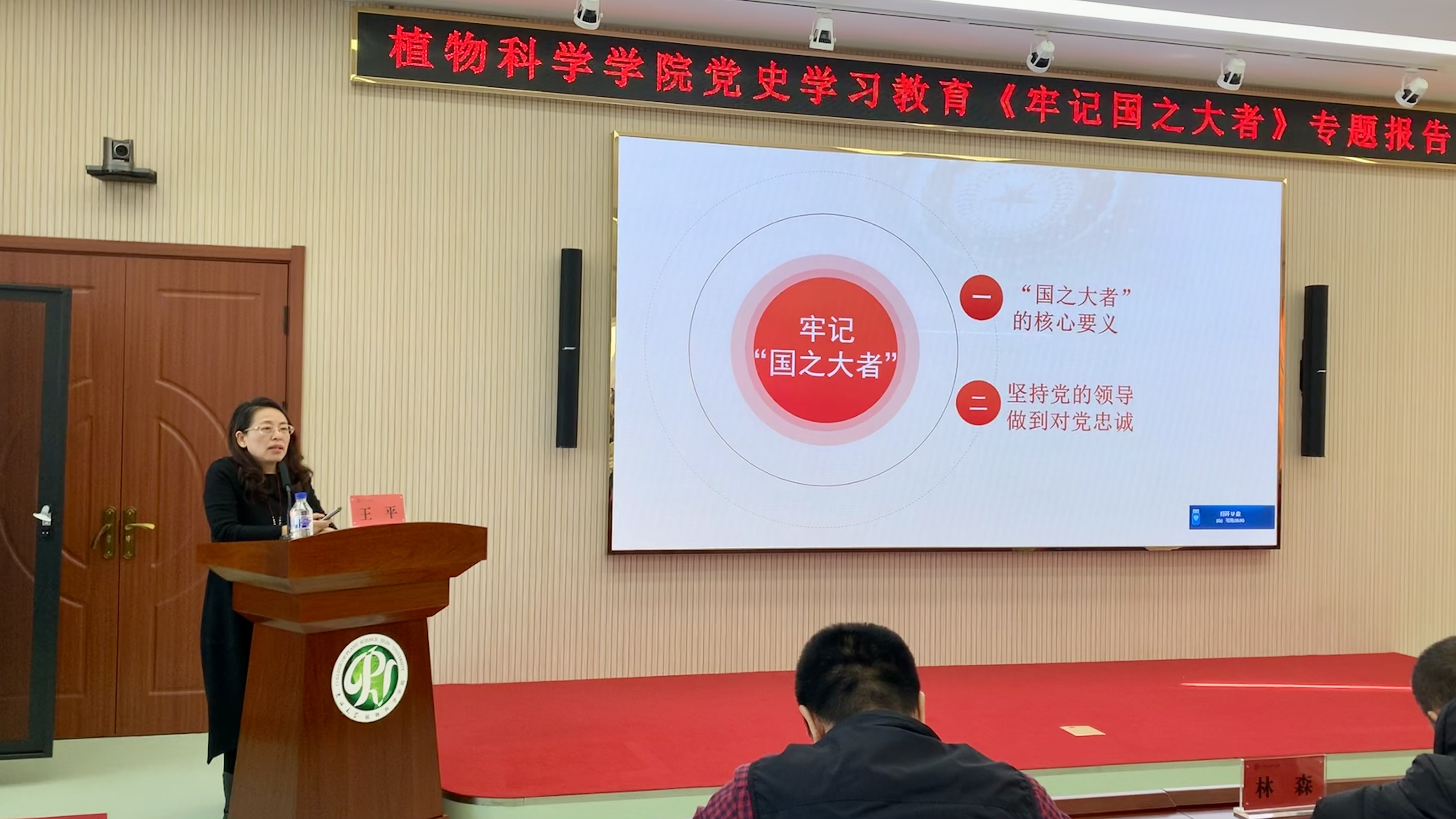 王平教授以《牢记国之大者》为题,从“何为国之大者”、“怎样做到牢记国之大者”两个方面深刻阐述了国之大者的核心要义,深刻解读了牢记国之大者的丰富内涵,就如何做到对党绝对忠诚提出了指导性意见。王平教授希望,学院全体党员要牢记使命,结合工作学习实际,认真思考,要将《牢记国之大者》融入到工作中。