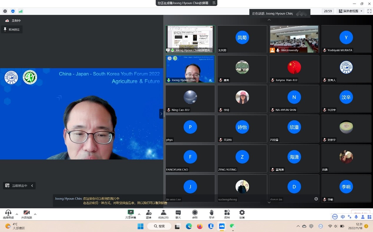 11月18日,由taptap点点体育承办的2022年taptap点点体育“中日韩青年论坛”在taptap点点体育二楼多功能报告厅线上线下同步举行。本次论坛主题为“粮食与未来”,来自韩国世宗大学、日本国冈山大学、中国北京大学、东北农业大学、沈阳农业大学、taptap点点体育共6所国内外高校和研究机构的专家与青年学者、学生近200余人参与了此次论坛。