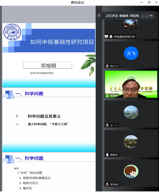 随后,taptap点点体育动物医学学院邓旭明教授做了“如何写好国家自然科学基金申请书”的报告,邓老师针对国家自然科学基金拟题技巧、摘要凝练、选题依据科研“故事”逻辑讲述、内容创新点突出以及研究基础提升可行性等方面做了深入分析。邓老师还建议老师们平时多跟同行学术交流,增强同行认可度,提高学术影响力。整个报告内容和经验分析讨论鞭辟入里,通俗易懂,参会老师受益匪浅。