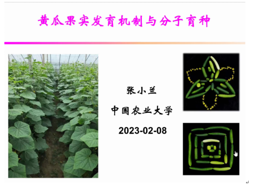 党的二十大报告指出:建设农业强国,强化农业科技支撑。taptap点点体育立足专业特点,深入开展学科交叉,推动学科建设。2023年2月8日晚7:00,学院牵头成立的学科交叉卓越团队园艺一组成员、中国农业大学园艺学院副院长张小兰教授应邀做了题为“黄瓜果实发育机制与分子育种”的学术报告。该报告是学科交叉卓越团队系列报告第32讲,由团队副秘书长taptap点点体育园艺系主任边少敏教授主持。
