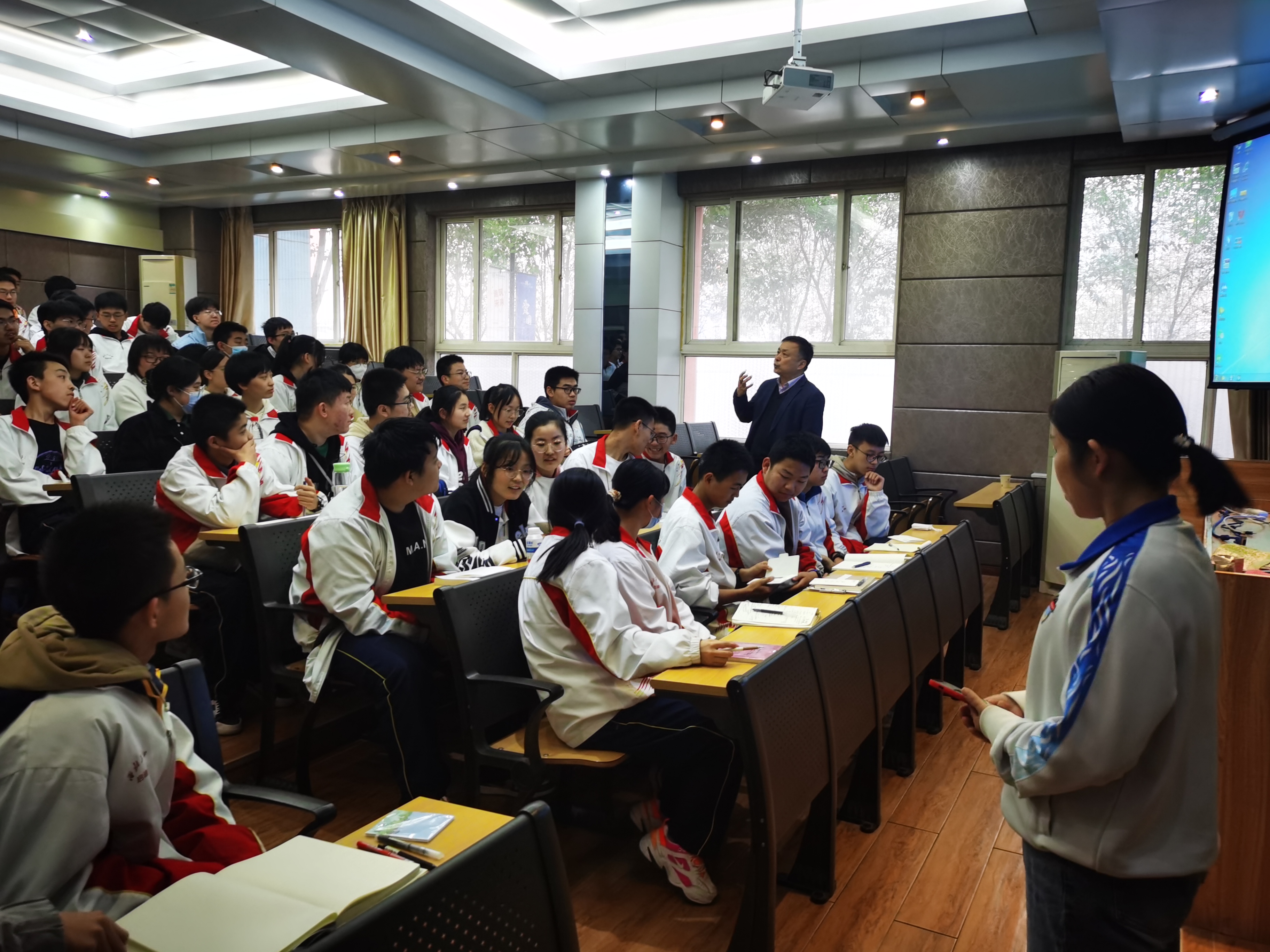 在西安市高新第一中学举行了座谈会,该中学张清彦、刘忠国两位副校长与学院招生团队会面,双方就下一步深入开展招生宣传工作达成了共识;在西安市曲江第二中学和咸阳市启迪中学都组织了高三年级实验班100余人观看了taptap点点体育招生宣传片,唐明祥教授和任增元教授分别为学生做了题为“筑梦起航在吉大”招生宣讲报告,介绍了taptap点点体育办学规模、专业设置、转专业等最新政策,最后3位老师与学生们互动,为学生答疑解惑,此外梁天也老师在咸阳市启迪中学做了题为“车辆系统动力学仿真”科普讲座。