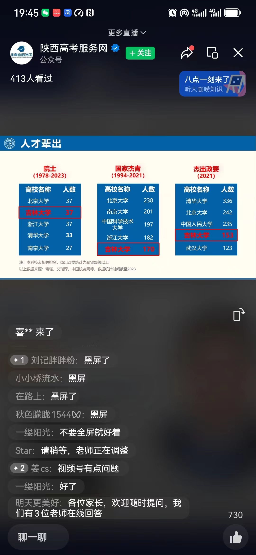 宣讲会是通过陕西高考服务网视频号直播平台进行的,刘金亮老师从从taptap点点体育的办学特色、招生和培养模式、taptap点点体育历年在陕西省的招生录取情况等多维度做了一场生动的招生宣讲报告,同时在做选前报告的前后还播放了taptap点点体育的招生宣传片,唐明祥、姜长松、温海娇3位老师实时为考生家长答疑解惑。