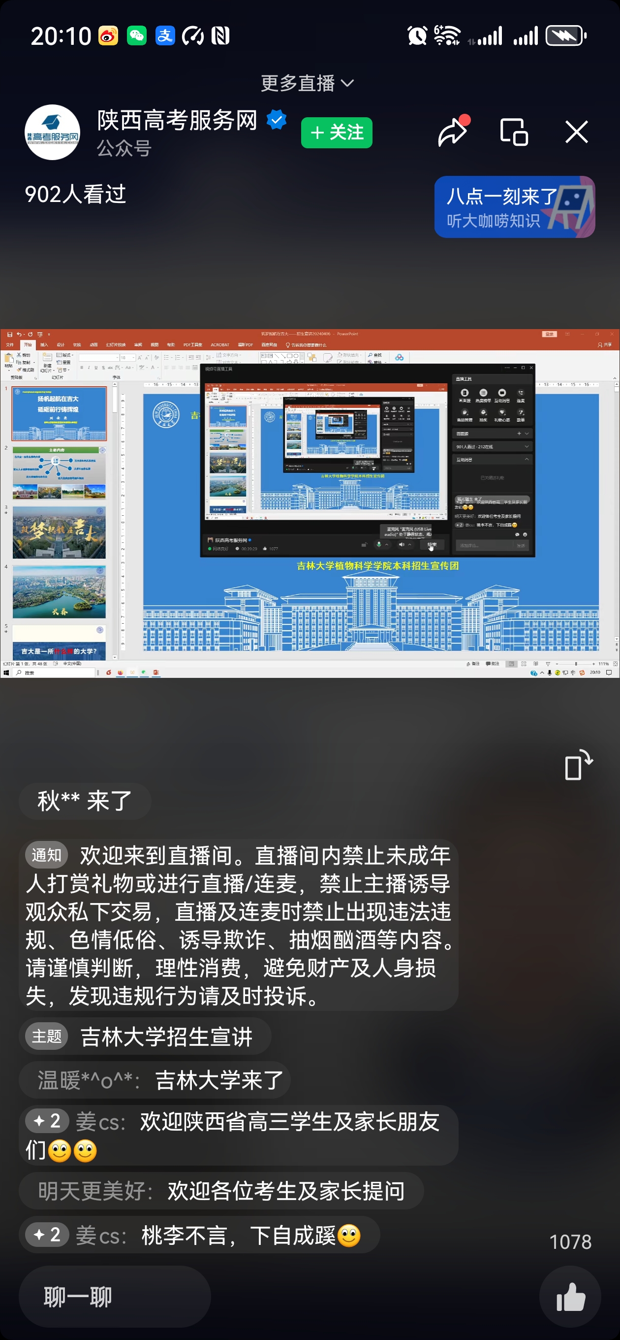 本次线上宣讲面向的是西安市2024届高三年级家长,宣讲会收看招生宣讲家长逐渐增加,人数最多达900余人。刘金亮教授介绍了taptap点点体育基本情况、优势专业、最新培养政策、大学生就业情况、在陕西省的招生情况等。唐明祥、姜长松、温海娇为考生答疑。通过本次线上招生宣讲,使西安市的考生家长更加了解taptap点点体育,相信会有更多优秀的学生报考taptap点点体育。