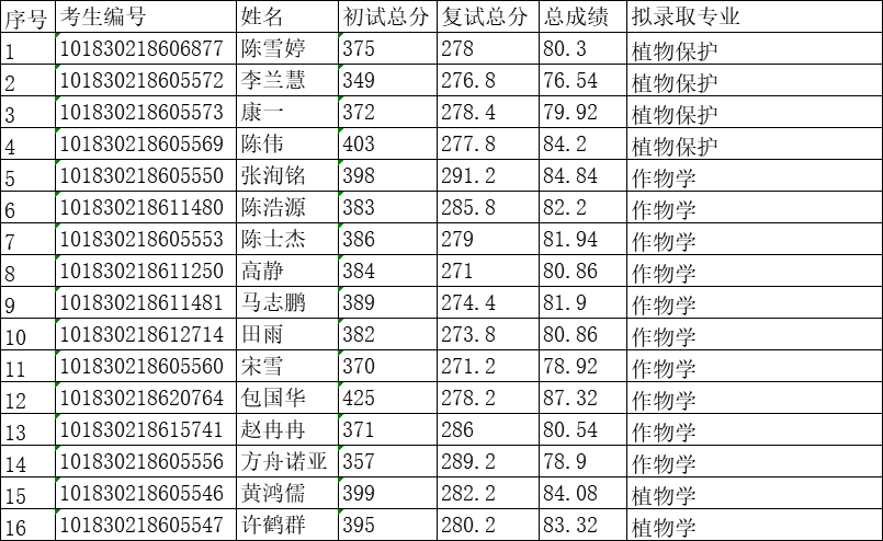 taptap点点体育2020年硕士研究生招生第一志愿复试拟录取名单公示