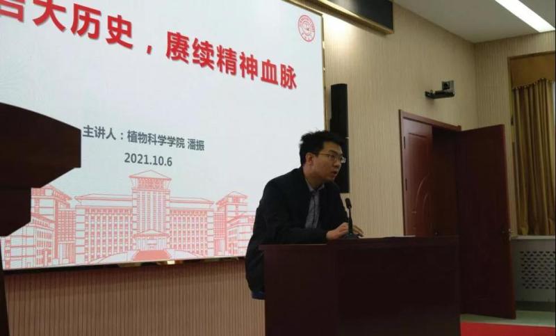 潘振从我校校史出发,详细介绍了我校合校史,追溯原各校区的发展历史,领略了原六校的历史风采。全体学生党员进一步认识了合校初期学校为实现可持续发展所作出的努力,认识了学校在不同发展阶段所明确的奋斗目标;进一步了解了各个发展阶段,学校为全面提升办学质量和核心竞争力而实施的“学术立校、人才强校、创新兴校、开放活校、文化荣校”的战略。