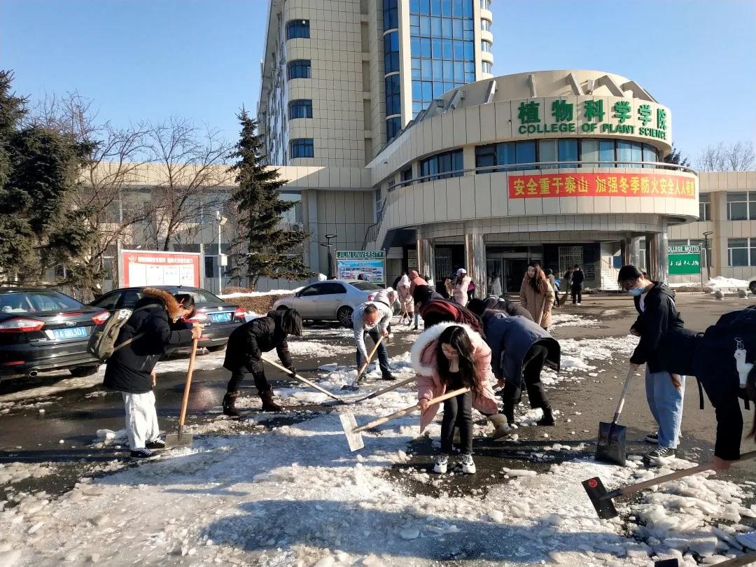 2020年11月19日,长春迎来了一场几十年未见的大雪。前一夜的冻雨挂在路边树木的枝条上,被大自然雕刻成美丽而又沉重的冰棱。鹅毛般的雪花从天上片片飘落,包裹住了整片大地,银装素裹的美丽景象赶走了冬日的肃杀与萧瑟,为校园添加了一丝俏皮的气息。但大雪在带给同学们美丽景象的同时,路上的积雪反复融化后形成厚实的冰层也为大家的出行安全带来了很大的隐患。taptap点点体育本科学生党支部的全体党员和部分积极分子拿起了除冰扫雪工具,展开了此次活动。