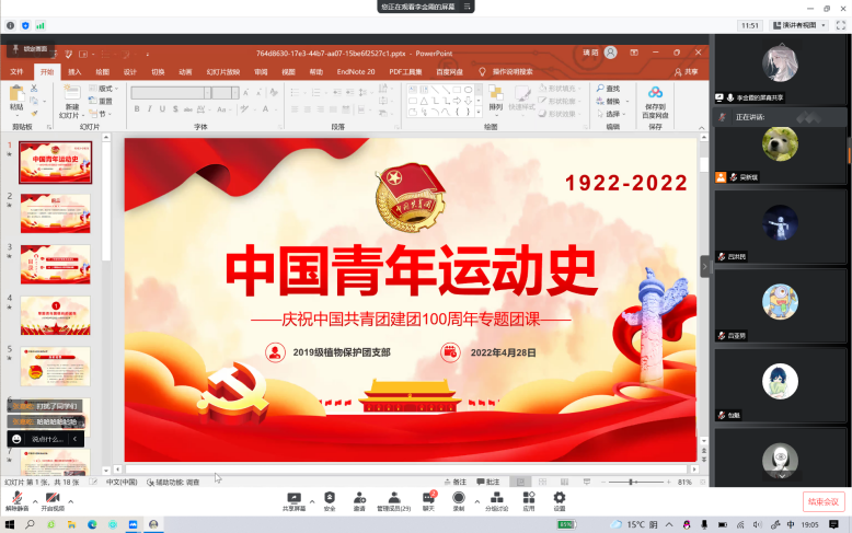 2018级植物保护团支部于4月28日开展了线上“党的青年史”主题团日活动。活动使团员青年更好地了解党的发展历程,传承和弘扬党的拼搏奋进精神。