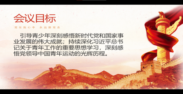 围绕习近平总书记讲话的重要内容展开本次团日活动。把听党话、跟党走的信念变成自觉追求,赓续红色血脉、传承红色基因。作为新一代青年,用脚步丈量祖国大地,用眼睛发现中国精神,用内心感应时代脉搏,与人民同呼吸共命运,勇往直前,开拓进取,为开创和推进中国特色社会主义事业做出贡献。