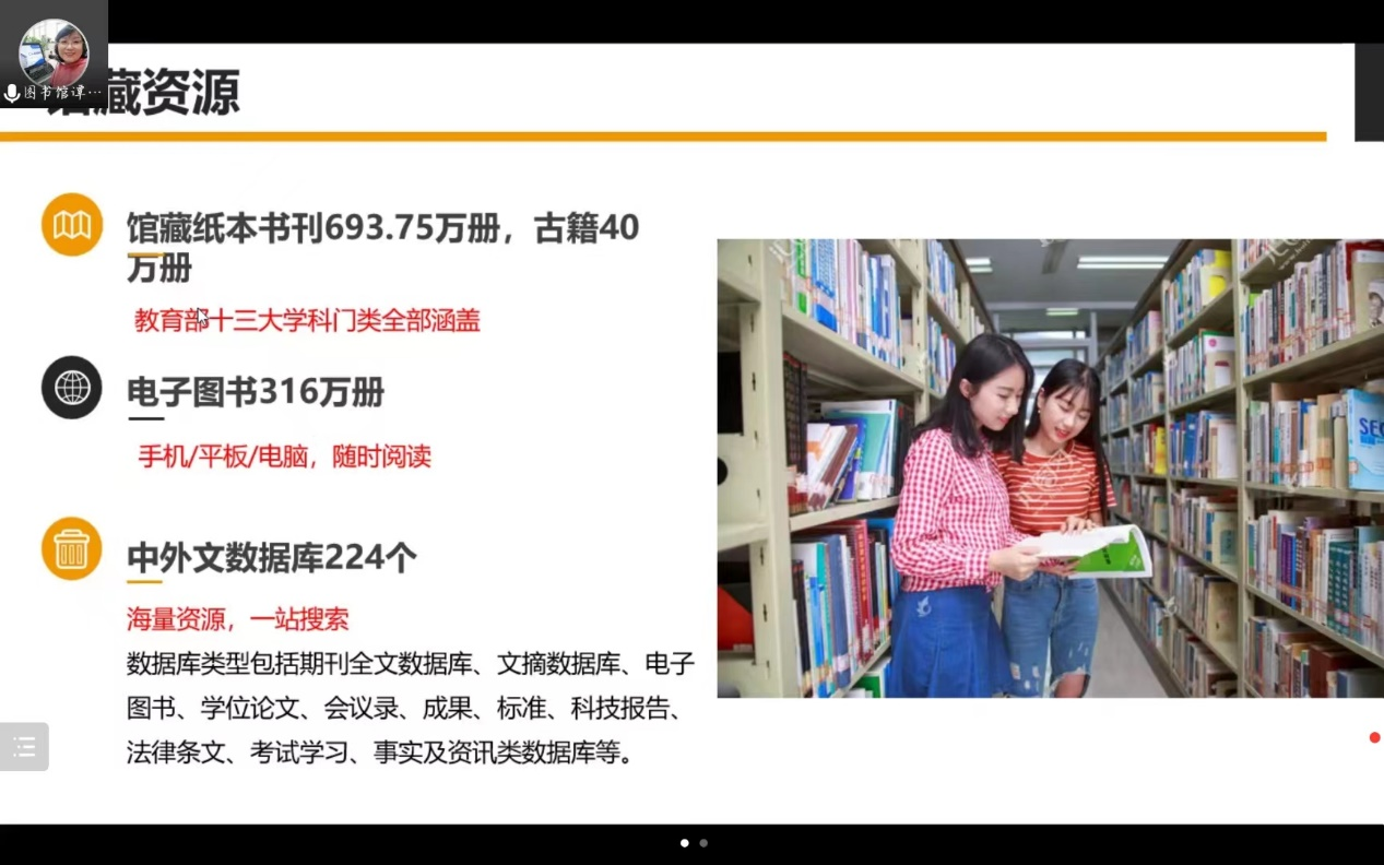为让新生了解、认识学校图书馆,指导新生学会充分利用图书馆的服务与资源,了解图书馆的服务模式、运行机制、藏书布局、规章制度等,8月31日,taptap点点体育与动物医学学院联合举办2022级新生图书馆入馆教育专题线上讲座。本次讲座主讲人为图书馆谭智敏老师,taptap点点体育全体2022级本科生、新生辅导员高梦玉线上参会。会议由动物医学学院张宇欣同学主持。