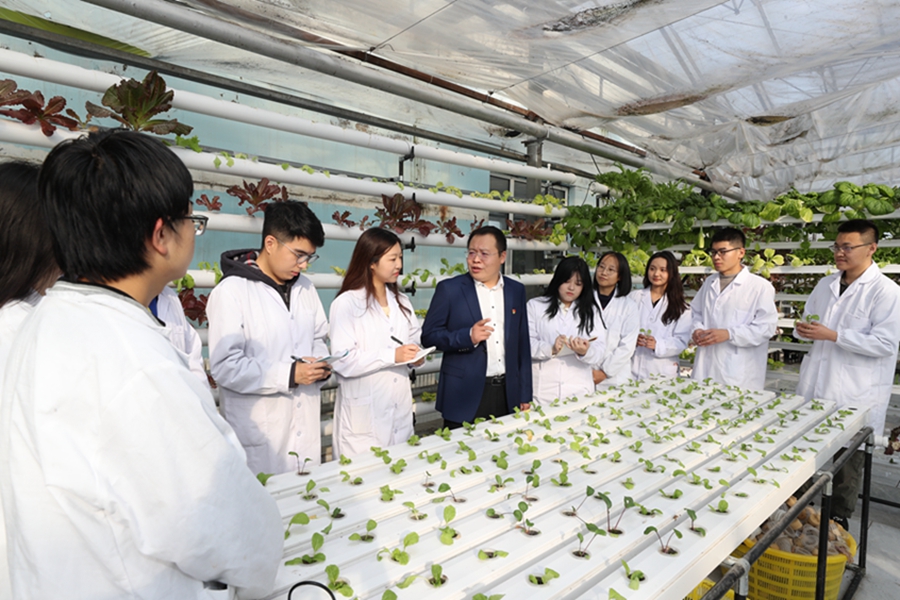 在学院鱼菜共生新农科基地,孙贺教授与在基地实习的师生一起交流学习党的二十大精神的体会,说感悟、谈收获,信心满怀、气氛热烈。孙贺教授就“怎样理解二十大报告将教育、科技、人才合并成为一章,放在第五部分‘实施科教兴国战略,强化现代化建设人才支撑’进行统筹部署,集中表达?”等问题进行逐一讲解回答。在场学生纷纷表示,党的二十大报告使他们振奋不已,作为实现中华民族伟大复兴的生力军,要牢记嘱托、砥砺奋进、努力学习,为祖国的建设添砖加瓦。
