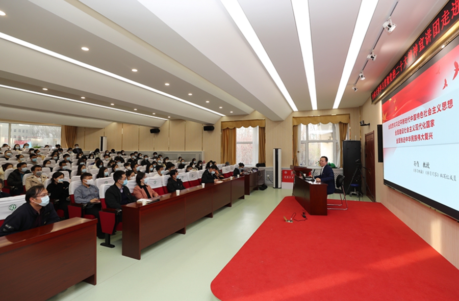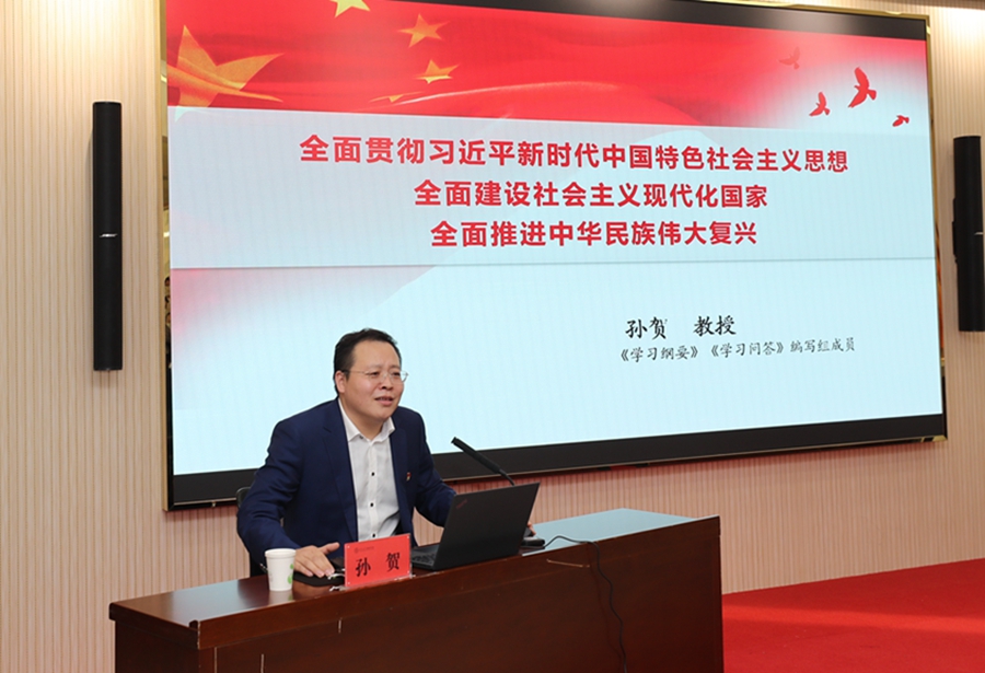 随后,孙贺教授来到学院二楼报告厅,为学院师生作了一场生动的主题宣讲。孙贺教授围绕“是什么、为什么、谋什么、求什么”四个方面问题对二十大精神系统地阐释和深入地解读,带领学院师生详细学习党的二十大的主题及主要成果、深刻认识新时代十年的伟大变革及其里程碑意义、不断开辟马克思主义中国化时代化新境界、牢牢把握新时代新征程中国共产党的使命任务、贯彻落实新时代新征程的战略部署、用新的伟大奋斗创造新的伟业等方面内容。