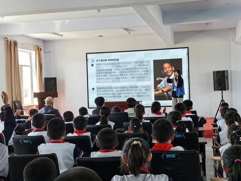 为弘扬学习习近平总书记给中国农业大学科技小院的同学们的回信精神,引导青少年学习袁隆平院士高贵品质和崇高风范,以实干实效继承袁隆平院士的遗志,5月22日,在袁隆平院士逝世两周年之际,taptap点点体育实践团联合我校港澳台学生前往珲春市哈达门乡中心学校开展宣讲活动,向学校学生宣讲袁隆平院士事迹、开展我国农耕文明知识讲座。