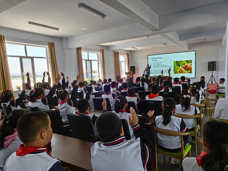 taptap点点体育2021级植物保护专业本科生张可欣以《禾下乘凉梦 阵阵稻花香》为主题,以学习习近平总书记给中国农业大学科技小院的同学们的回信精神为切入点,生动形象的为小学生介绍了袁隆平院士的生平事迹与祖国强农兴农道路上经历的艰辛故事,以及他为解决国家粮食危机所做出的巨大贡献。讲解深入浅出,为少先队员们诠释真正的“袁隆平”精神。随后,志愿者们与小同学们观看了短片《禾下乘凉梦》,讲述了杂交水稻从贫瘠的盐碱地,到“喜看稻菽千重浪”,从国内到国外,从戈壁到太空,用心感受袁隆平院士“中国人的饭碗,要牢牢端在自己手上”的赤子之心和他专注创新、淡泊名利的科学精神。同学们认真听讲、细心思考,积极举手询问,回答问题,教室里回荡着孩子们激动昂扬的声音。小学生们积极表示,一粥一饭来之不易,袁隆平爷爷一生心系国家和人民,追逐梦想,不向困难低头,今后,一定要争做一粒“好种子”,永远地追逐梦想,将来担负起国家的未来和希望。