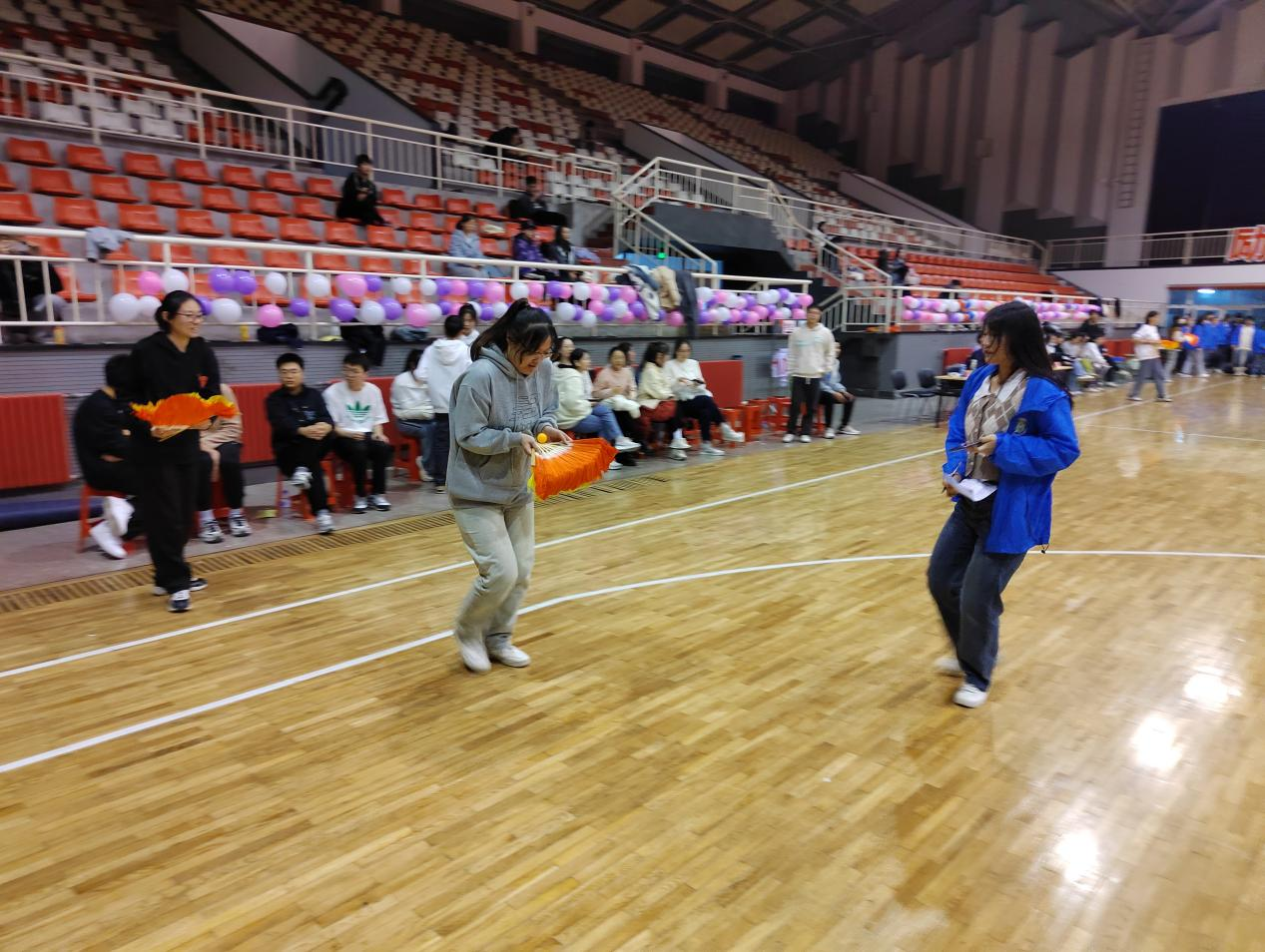 短暂休息过后,我们进入到珠行万里游戏环节。在这轮游戏中,各组同学手持扇子与垫子,带着轻盈的乒乓球奔跑在赛道上,队员之间传递的不止简单的乒乓球,更是信任与默契,是团结与心有灵犀,欢声与笑语中,汗水被忘记,只剩眉间缓缓绽开的喜悦。