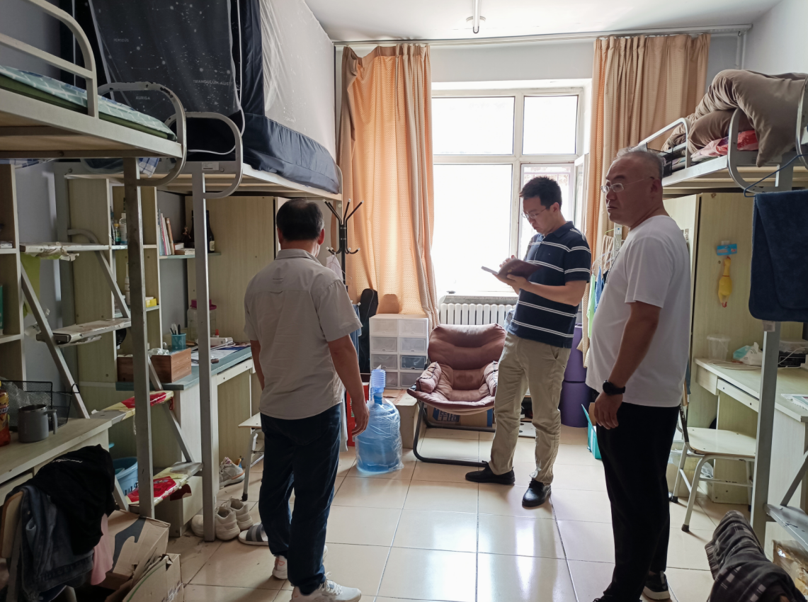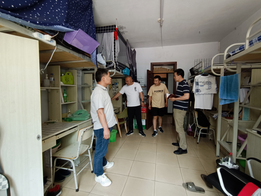 根据学校、学院相关工作安排。taptap点点体育潘振副书记带领研究生辅导员邓松老师及本科生辅导员曾光老师于2023年6月26日上午11点对学院所有研究生、本科生宿舍进行了宿舍卫生安全检查,进一步加强夏季学生宿舍安全管理,保障学生人身安全,提高学生宿舍卫生安全意识。