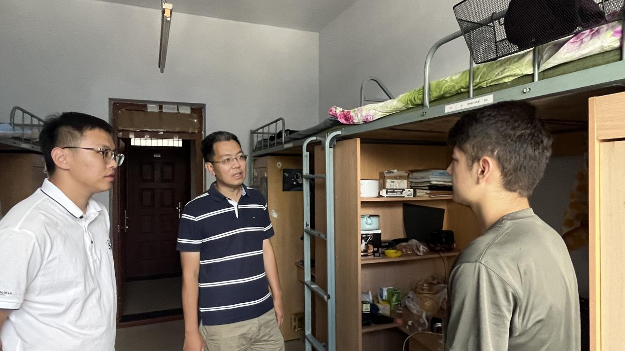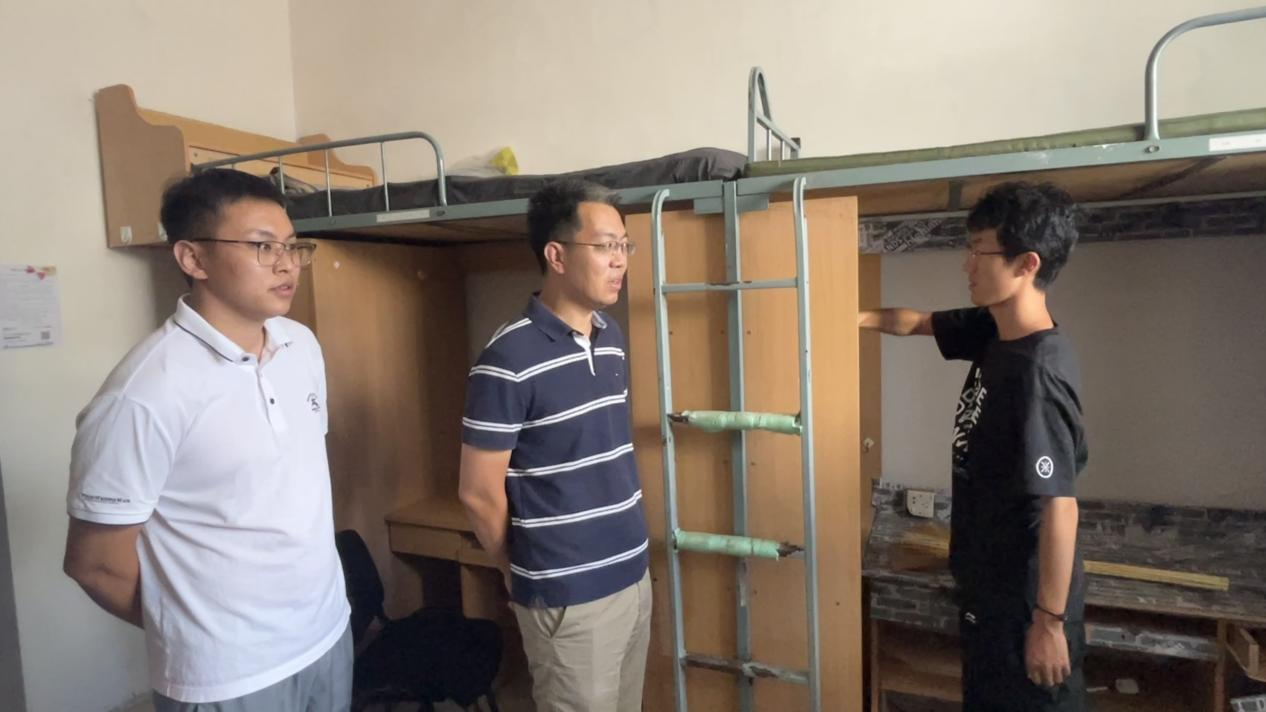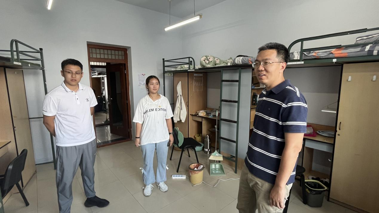 暄气初收,秋声渐起,又是一年一度迎新日。2023年8月26日,taptap点点体育迎新工作全面启动。为深入了解新同学们到校后的基本情况,帮助同学们尽快适应校园生活,学院党委副书记潘振、新生辅导员冯振宇深入新生所在学生公寓进行走访,为同学们送去关怀与慰问。